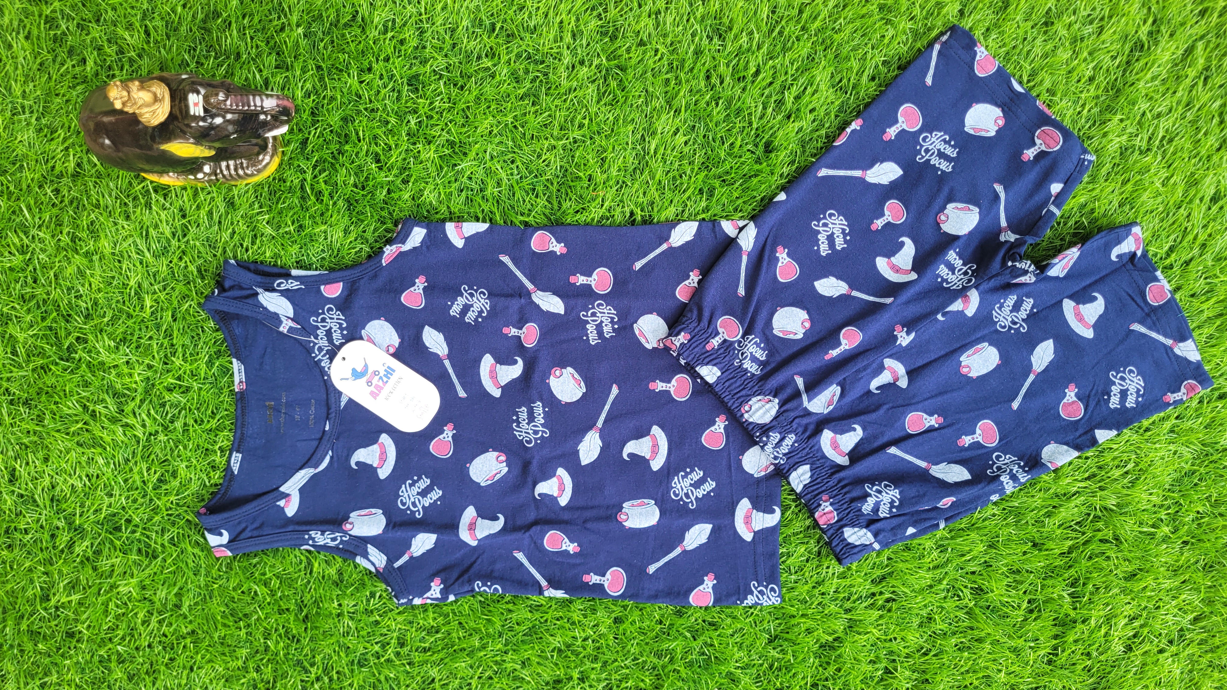 Breathable, stretchable, non-transparent Fit Type: Relaxed Sleeve Type: Sleeveless Bottom Type : Half pants Neck Type: Round Material composition: 100% knitted cotton (GSM – 180) Instructions: Hand Wash, Do not bleach, Machine wash.